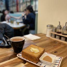 I went here for a decadent sweet breakfast. I got the iced HK style milk tea and the Golden Lava toast, which were both really really good!The atmosphere is relaxed, and service is very forthcoming.Love that they opened at am so early risers like me have a place to eat Definite recommendation!